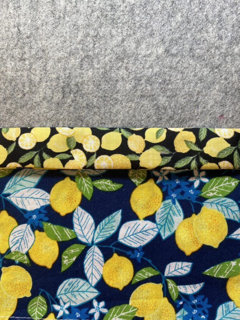 - For a medium bag, you will need two fabric rectangles, one for the outer fabric and one for the inner lining, each piece 7″ x 8″.